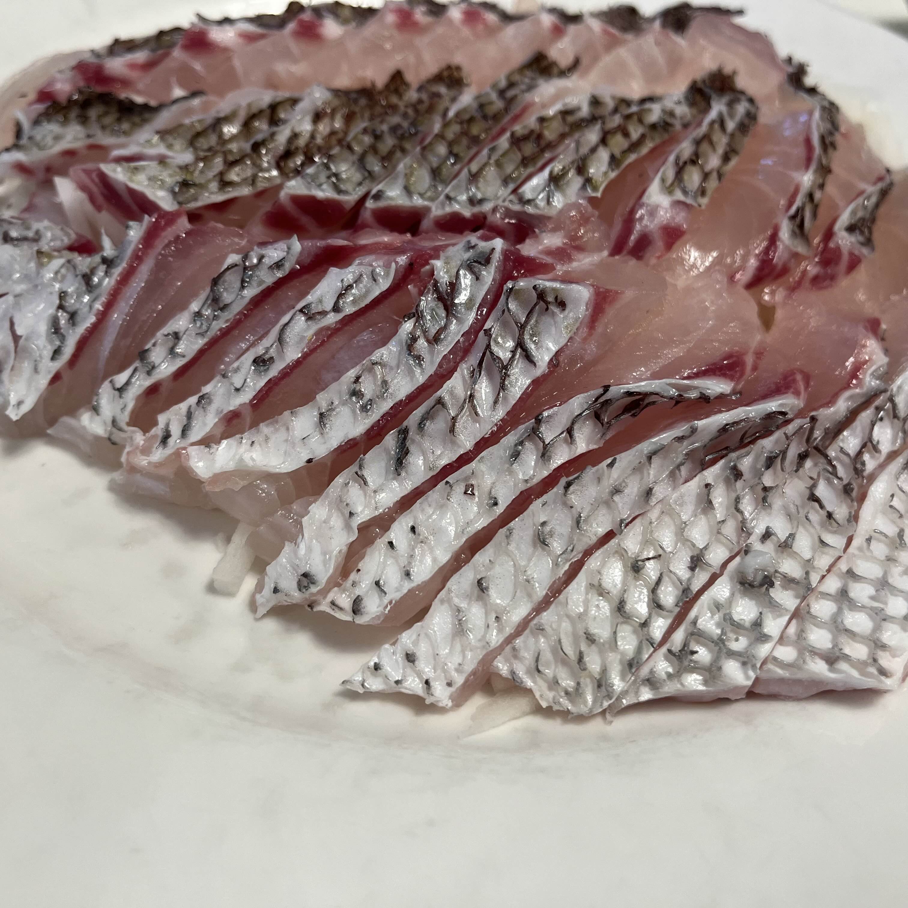 회를 뜬 후 참돔의 껍질에 뜨거운 물을 부어