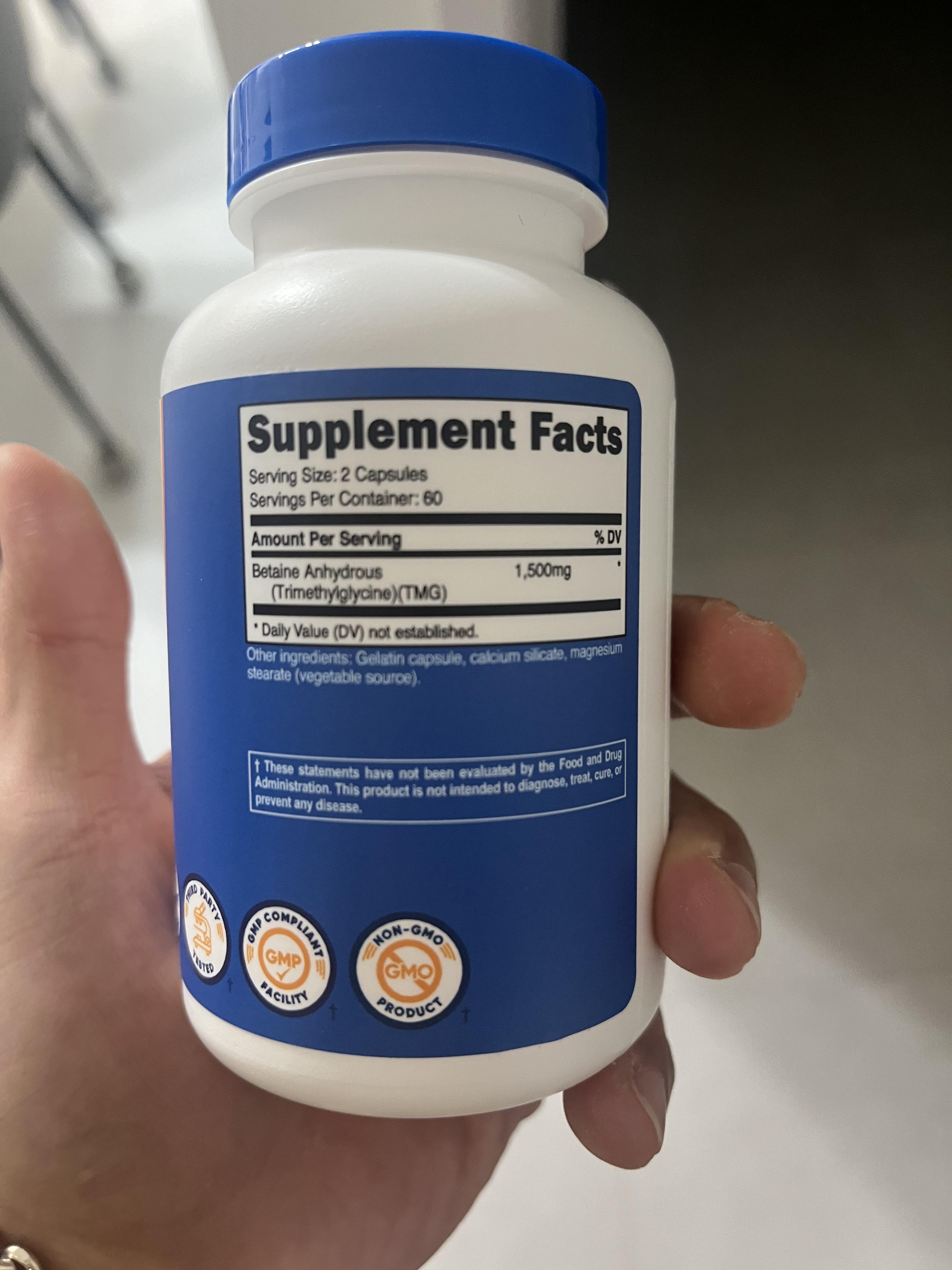 베타인은 하루 1g~2.5g의 섭취를 권장한다.