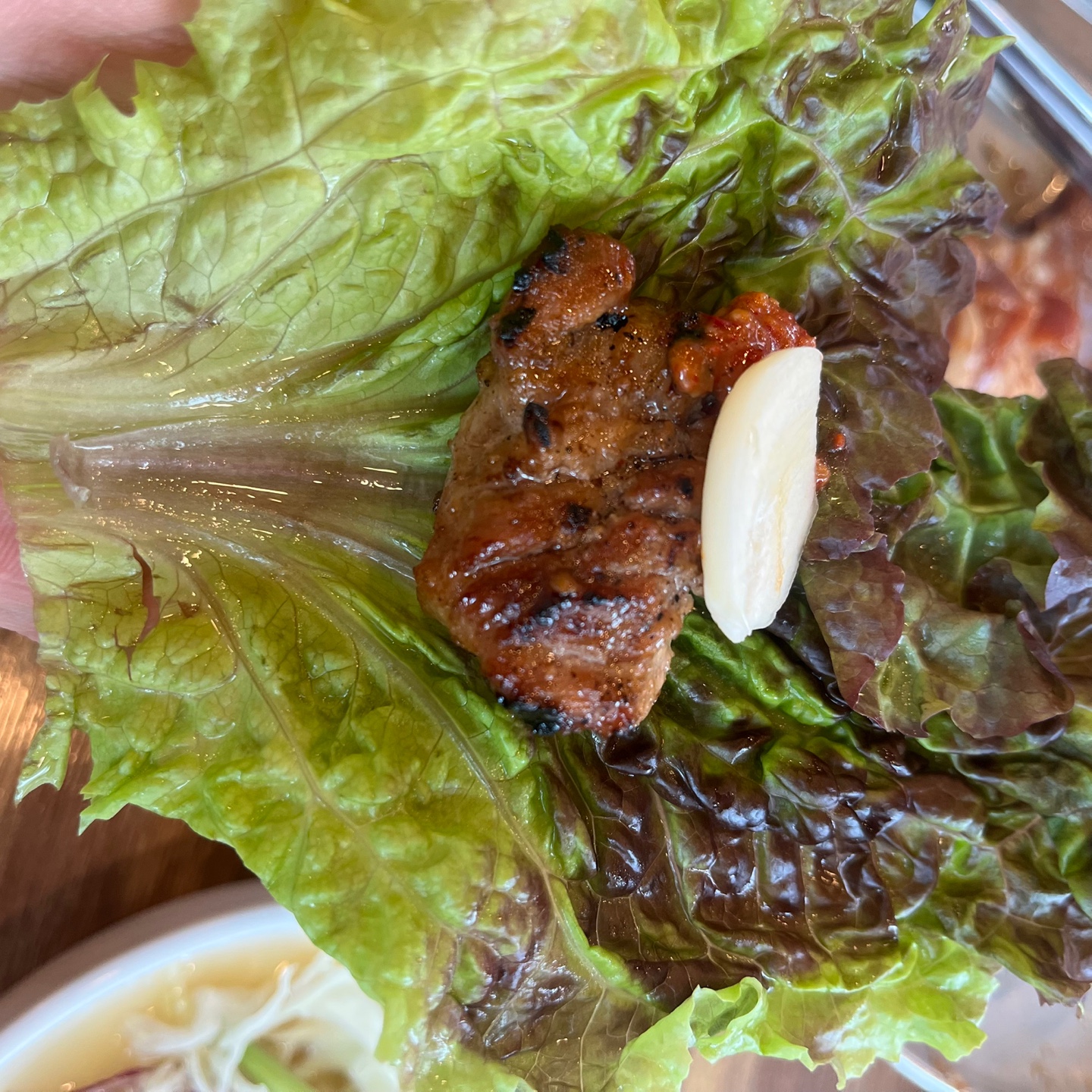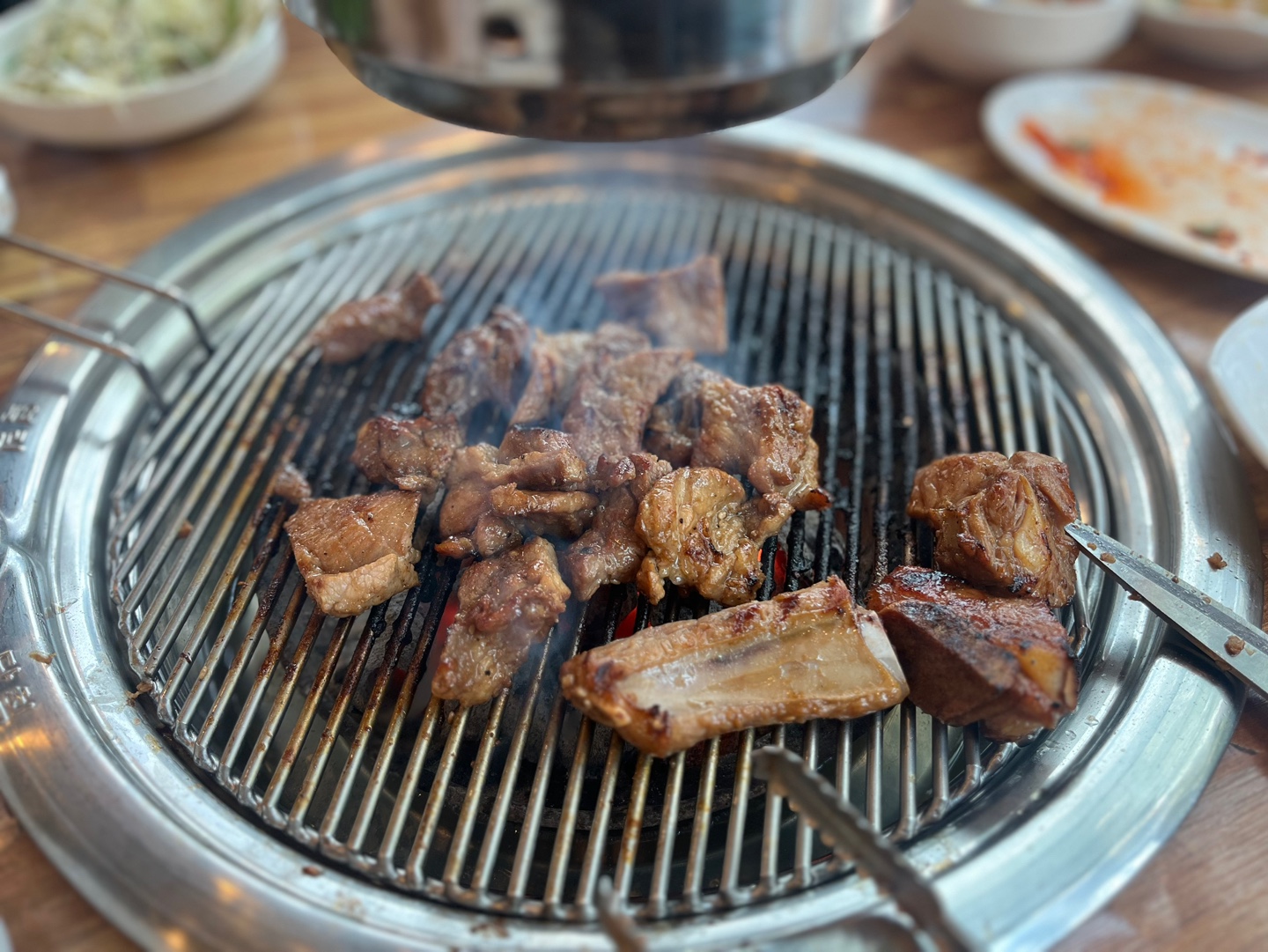 곧 양념 갈비가 나와서 바로 불판에 올렸다.