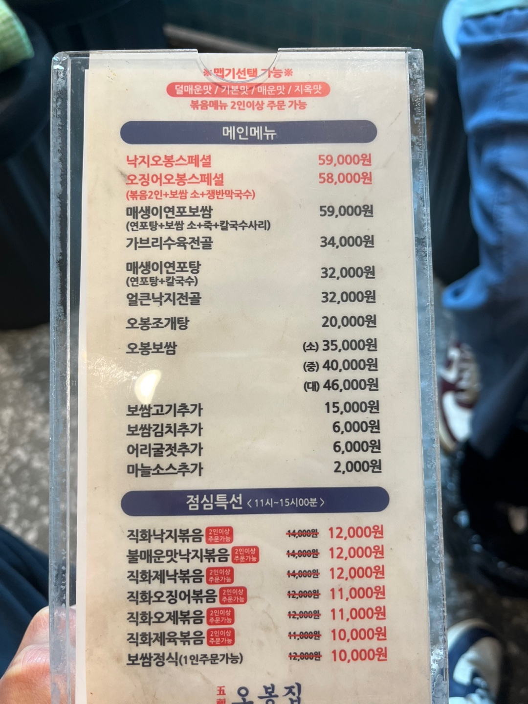 점심 식사메뉴로 낙지볶음 2인분을 주문했다.