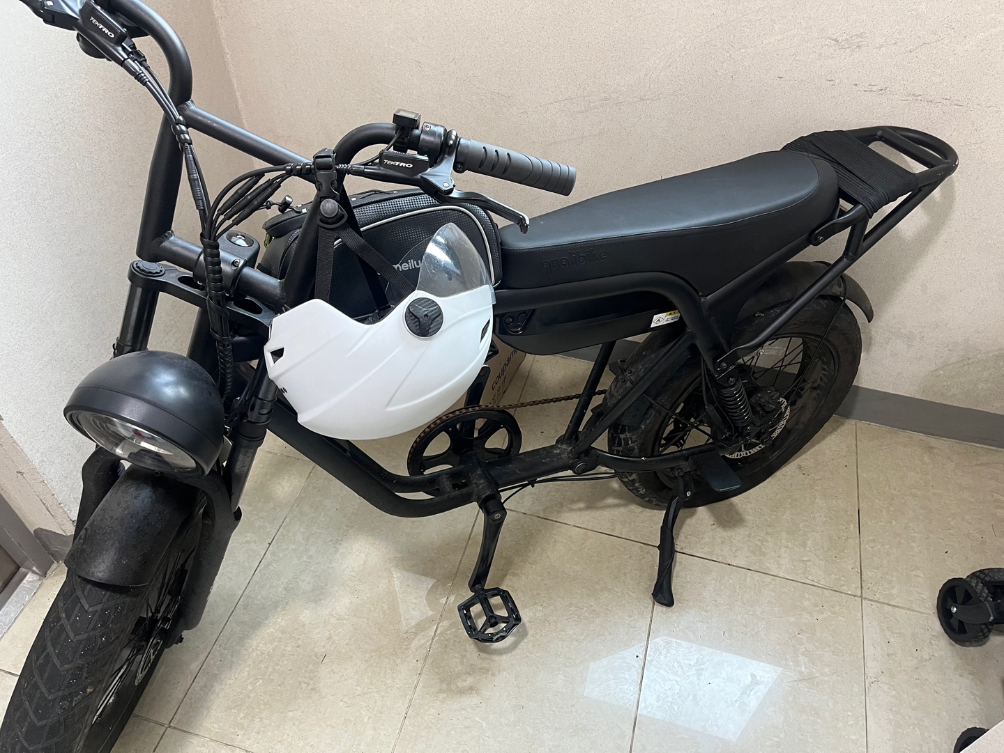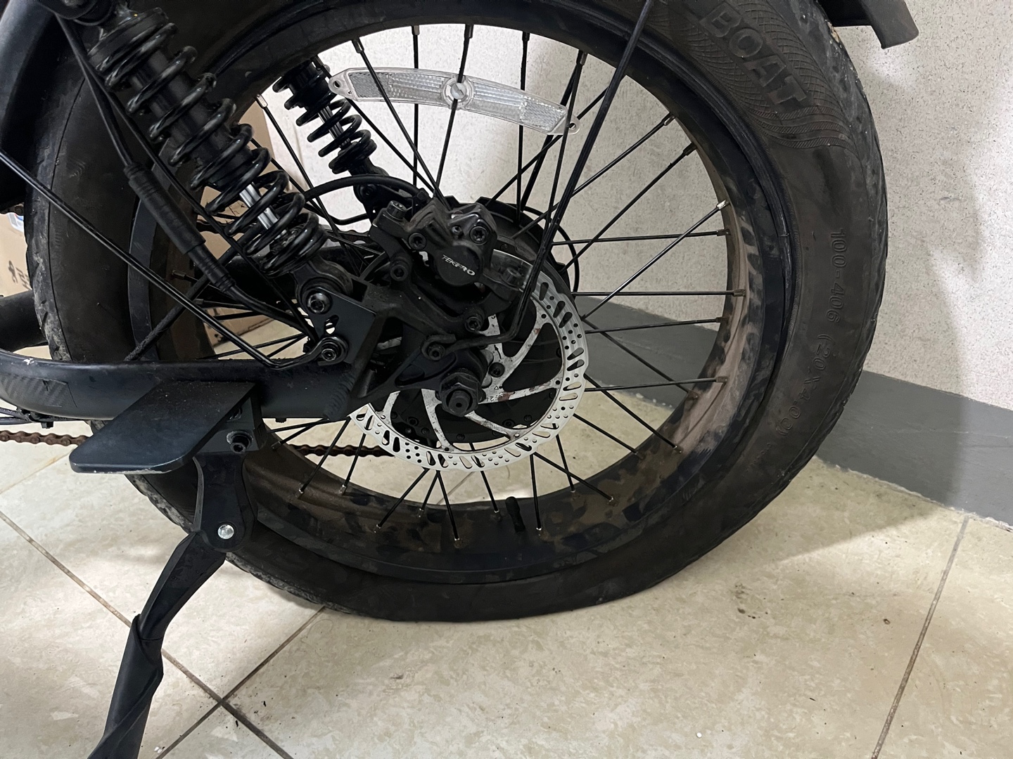 퀄리 엑스트론의 뒷 타이어가 펑크가 났다.