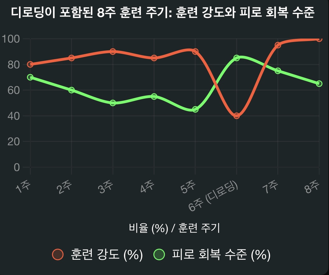 | ✅오버트레이닝 방지 | 지속적인 고강도 훈련은 부상 위험과 기록 정체를 초래하며, 디로딩은 이를 예방할 수 있다. |